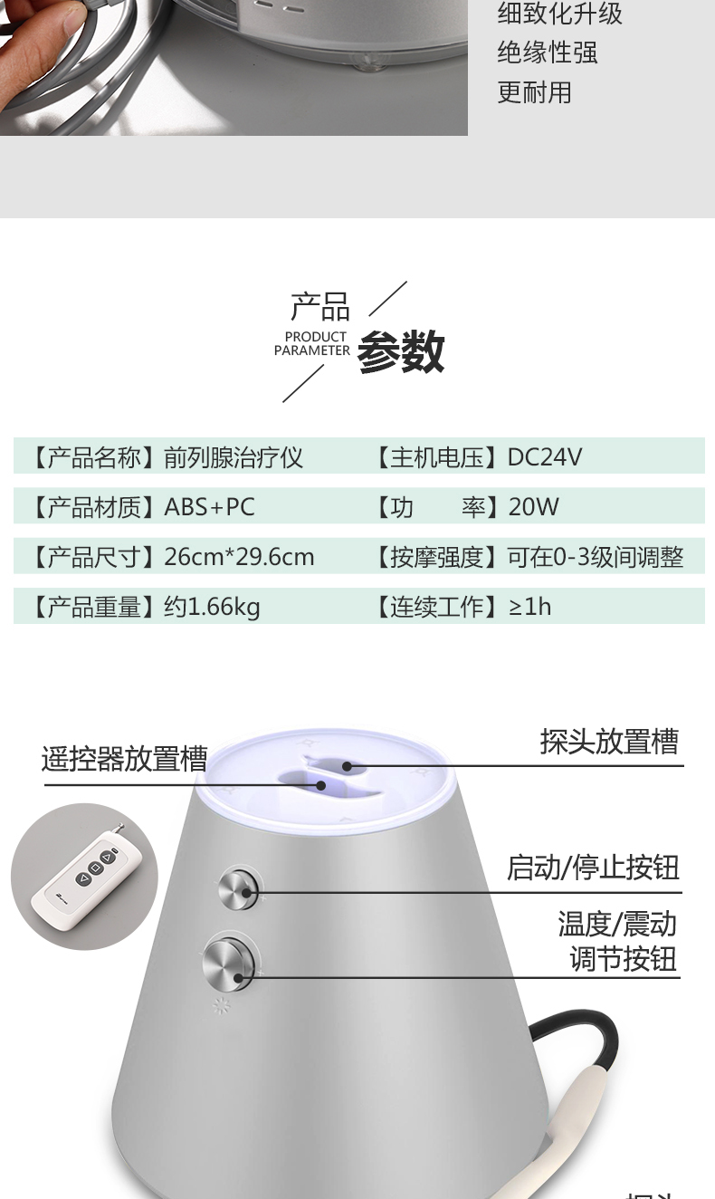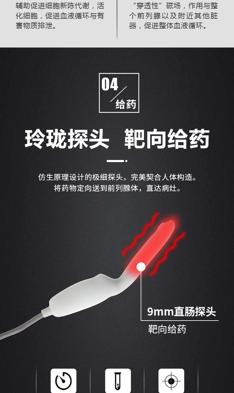 振動(dòng)按摩主要是代替人手的按摩作用,前列腺按摩可以緩解局部充血,減少分泌物郁積,清除前列腺腺管內(nèi)的細(xì)菌和碎片,促進(jìn)藥物及炎癥吸收,緩解會陰部癥狀等輔助治療。? ? ? ? ? ? ? ? ? ? ? ? ? ? ? ? ? ? ? ? ? ? ? ? ? ? ? ? ? ? ? ? ? ? ? ? ? ? ? ? ? ? ? ? ? ? ? 主要用途及適用范圍: