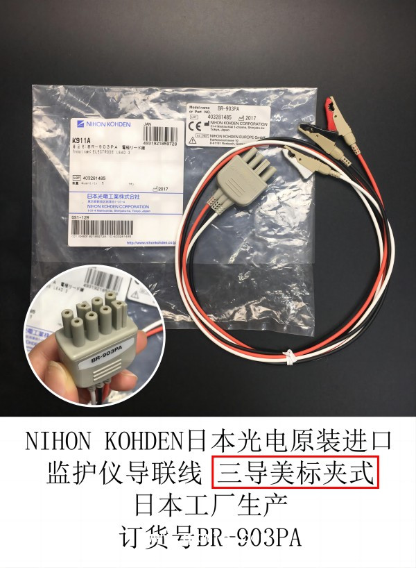 NIHON KOHDEN日本光電監(jiān)護(hù)儀原裝導(dǎo)聯(lián)線 三導(dǎo)美標(biāo)夾式 遙測(cè) K911日本工廠生產(chǎn)訂貨號(hào)BR-903PA