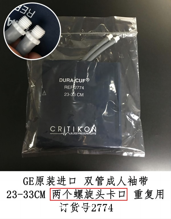 GE原裝進(jìn)口雙管成人袖帶 23-33CM 重復(fù)用 兩個螺旋頭卡口 訂貨號2774