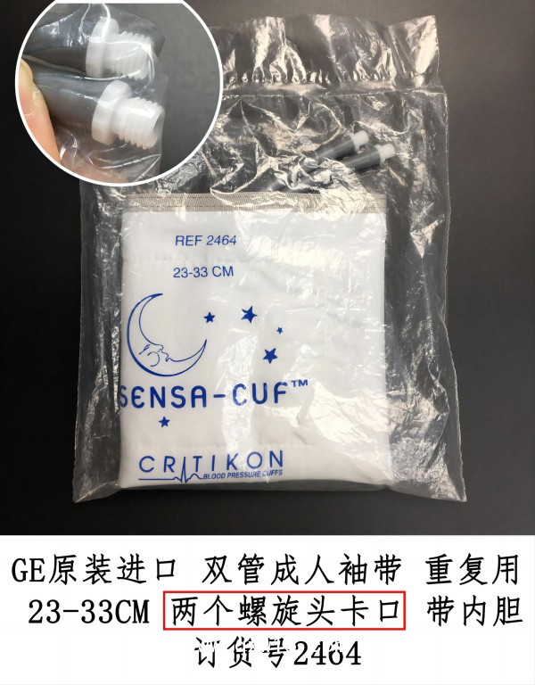 GE原裝進(jìn)口雙管成人袖帶 23-33CM 重復(fù)用 兩個(gè)螺旋頭卡口 帶內(nèi)膽 訂貨號(hào)2464