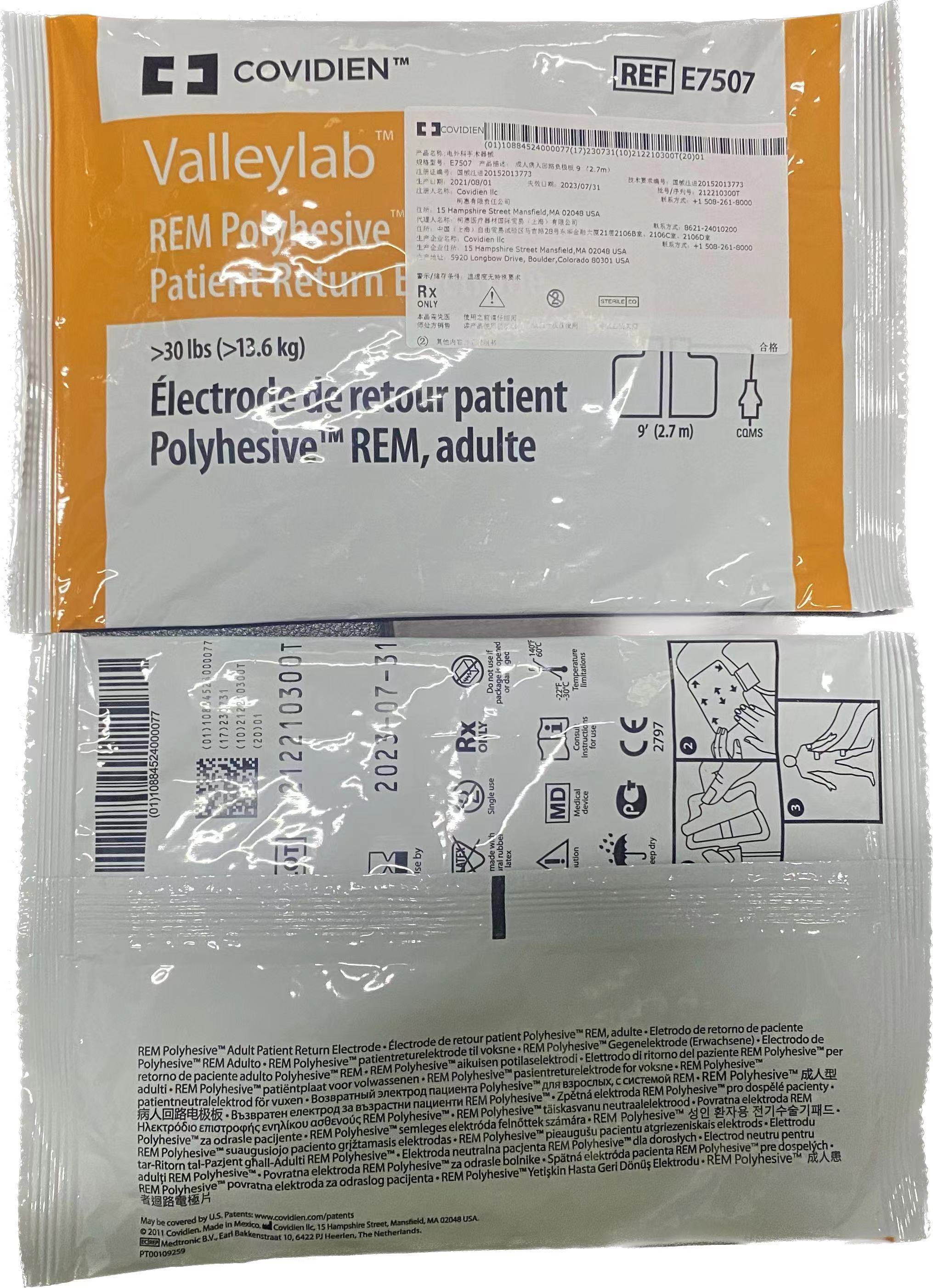 柯惠成人病人回路負極板E7507產(chǎn)品說明:
