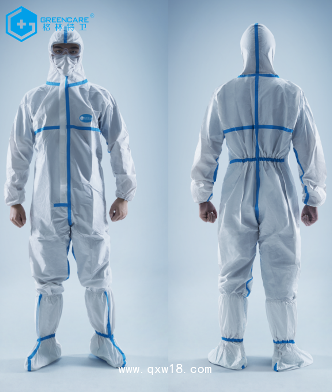 產(chǎn)品結(jié)構(gòu)和組成:由覆膜無紡布、膠條制成,由連帽上衣、褲子組成,為連身式結(jié)構(gòu)。經(jīng)環(huán)氧乙烷滅菌,應(yīng)無菌。