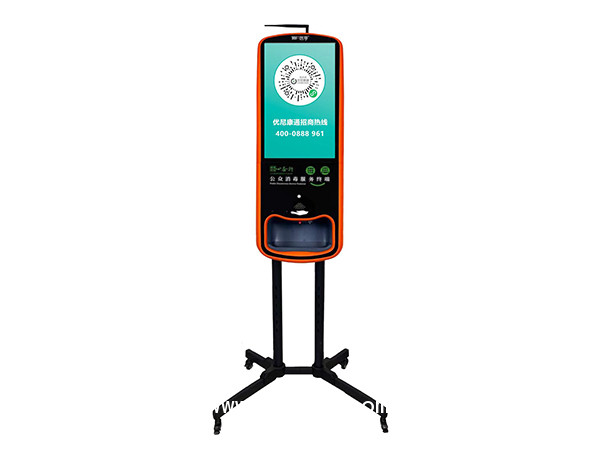 一款集手部消毒、人體測溫、信息展示、語音播報于一體的手消機