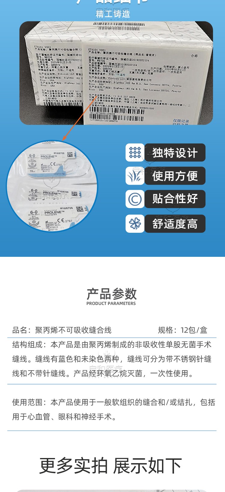 強生聚丙烯不可吸收性縫合線W8556產(chǎn)品說明:
