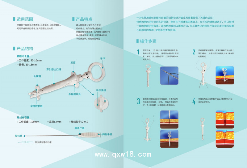 3、防刺穿保護(hù),更安全,解決穿刺針刺破其他組織的風(fēng)險(xiǎn)4、操作上更簡(jiǎn)單、更迅速,真正實(shí)現(xiàn)切口快速縫合