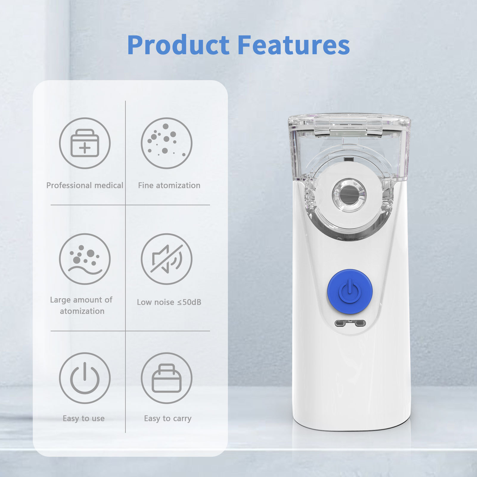 長(zhǎng)坤霧化器便攜超聲波微網(wǎng)霧化器兒童成人家用靜音手持霧化加濕器產(chǎn)品說明: