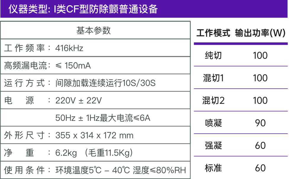 本手術(shù)設(shè)備的單極模式包含單極電切和單極電凝模式;雙極模式包含標準和精細,輸出功率均可調(diào)。