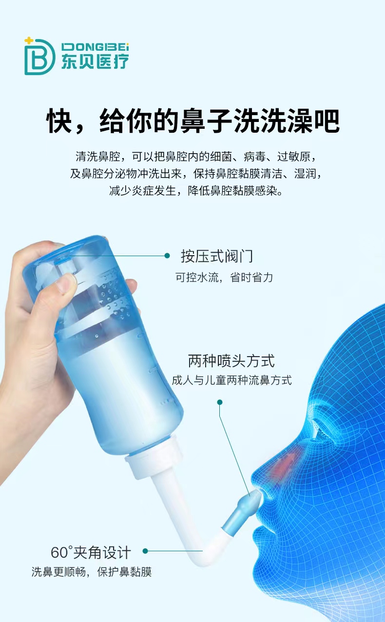 東貝鼻部沖洗器 洗鼻器輕松洗鼻含洗鼻鹽廠家現(xiàn)貨供應(yīng)產(chǎn)品說明:
