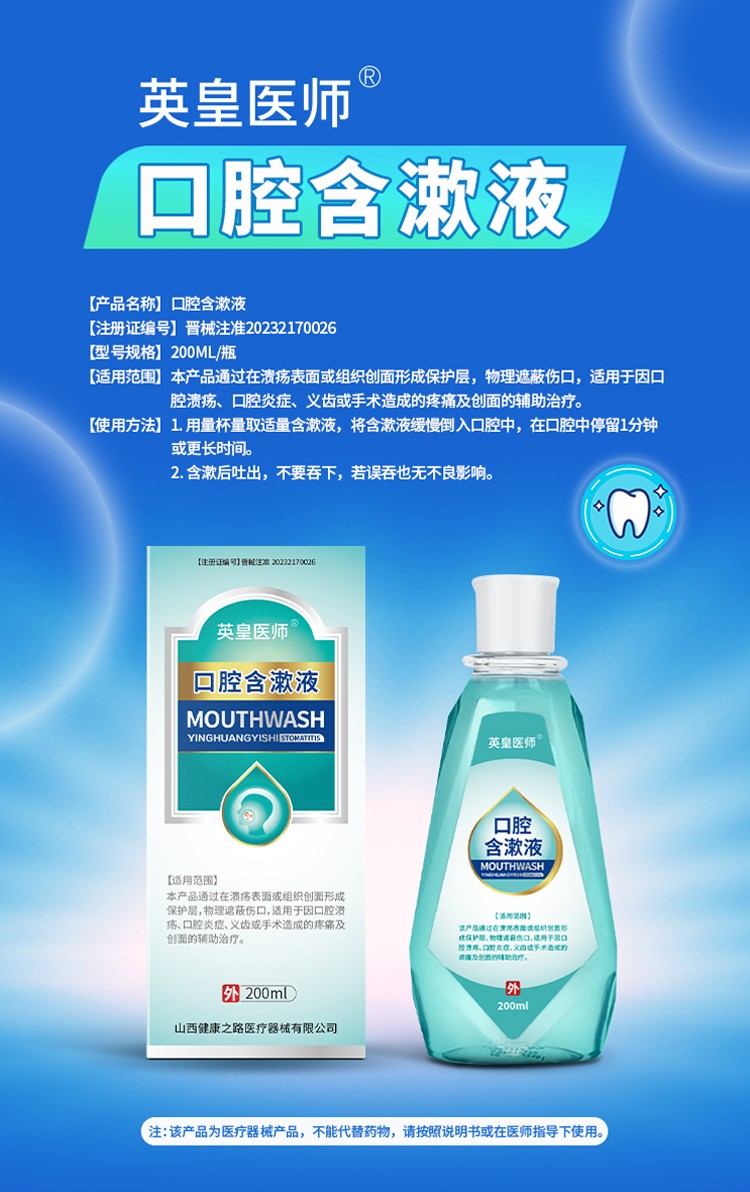 口腔含漱液醫(yī)用涑口水口腔潰瘍護理液OEM貼牌代理產品說明: