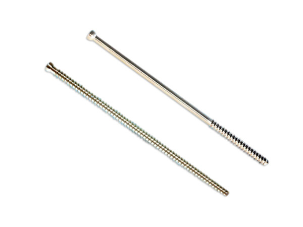 設(shè)計特點:前螺紋的螺距為后螺紋螺距的二倍,變螺距設(shè)計能產(chǎn)生良好的加壓作用,針體為圓錐型,植入時不會有阻力,因前頭細后頭粗取出也方便。