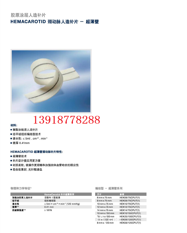 HEMACAROTID 超球壁碰動脈補(bǔ)片特性: