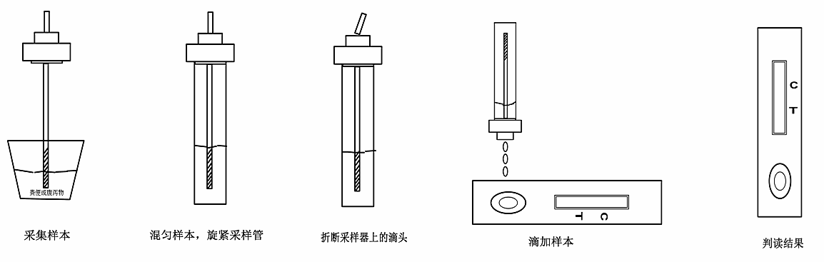 (1)用糞便采樣器插入肉眼觀察具有代表性的糞便樣品中,取一份糞便(約100mg),?置裝有樣本稀釋液的采便器內(nèi)。。