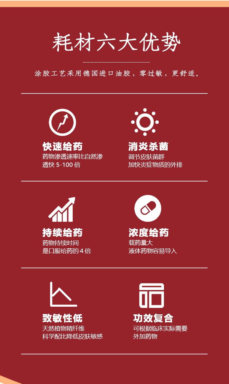 更快更準(zhǔn)確地作用于患處,增強(qiáng)藥物功效。同時(shí)發(fā)熱電極板加熱產(chǎn)生的熱刺激,