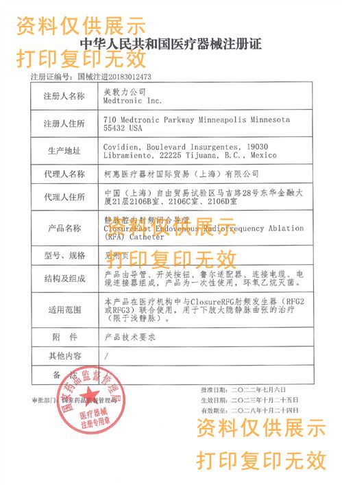 適用范圍:本產(chǎn)品在醫(yī)療機構中與ClosureRFG射頻發(fā)生器(RFG2或RFG3)聯(lián)合使用,用于下肢大隱靜脈曲張的治療(限于淺靜脈)。