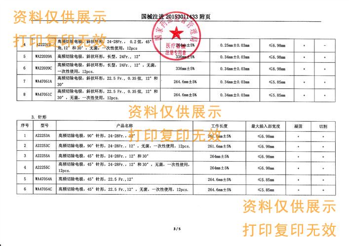 規(guī)格:無菌,一次性使用,12pcs,工作長度264mm±5%,最大插入部寬度≤6.98mm