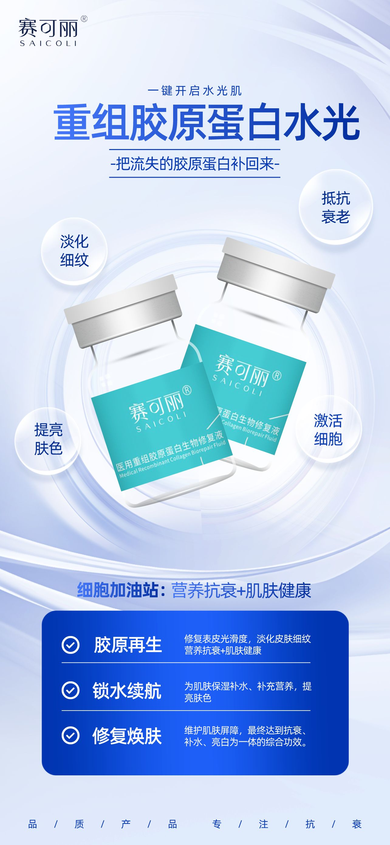 醫(yī)用重組膠原蛋白生物修復液(膠原蛋白水光)醫(yī)院 診所產(chǎn)品說明: