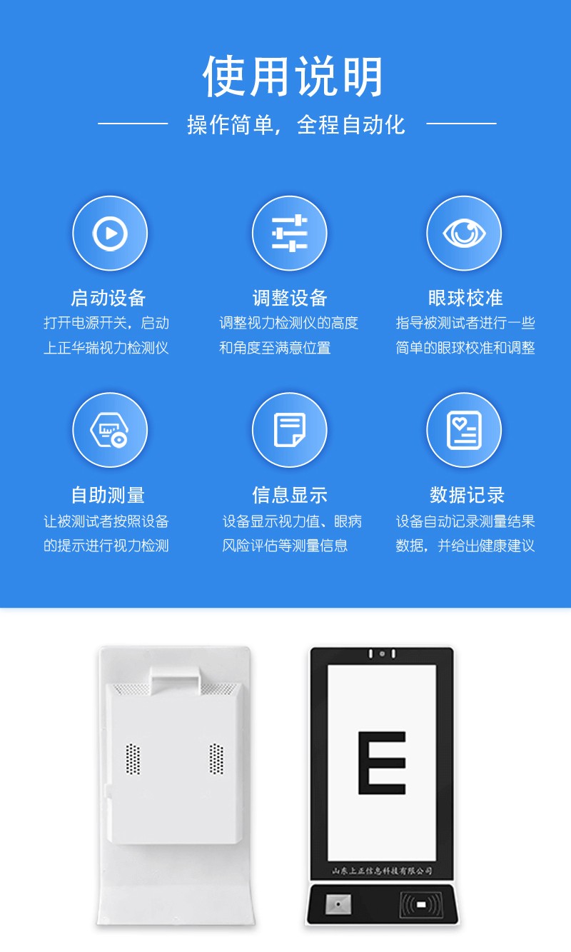 可移動性和便利性:上正華瑞視力檢測儀具有可移動性,方便布置,在室內室外均可檢測,不受環(huán)境限制。上正華瑞視力檢測儀占地面積小,可隨時更換使用地方,美觀且故障率小,維護簡便。