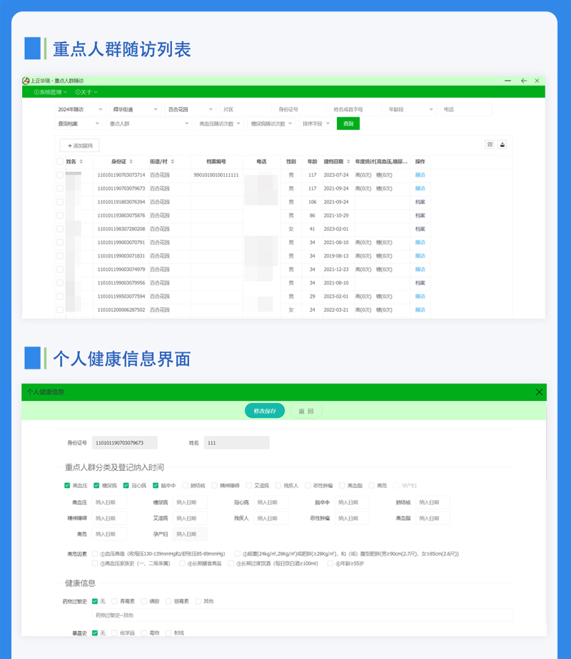 11、 增加慢病檔案,可刷身份證或手工錄入建檔;