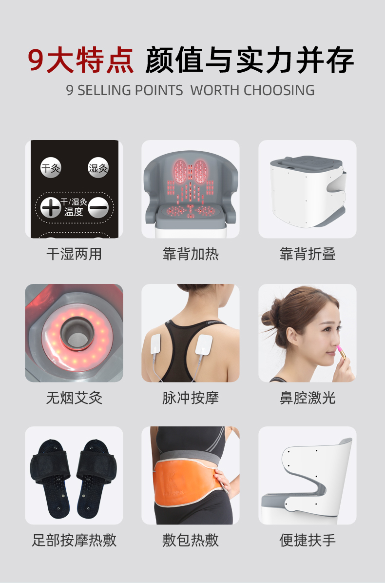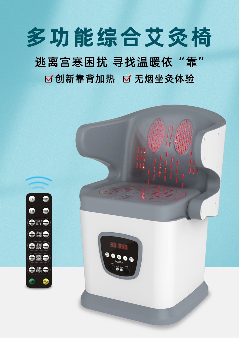 多功能綜合艾灸椅干濕兩用多功能無煙艾灸儀坐灸儀艾灸理療儀產(chǎn)品說明: