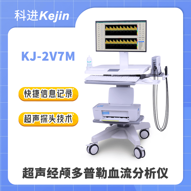 KJ-2V7M型超聲經(jīng)顱多普勒血流分析儀,該TCD產(chǎn)品匯集了小信號識別、M模和血管自動搜索等多項TCD技術(shù),可實現(xiàn)單、雙通道雙模式檢測,配置了復(fù)合材料超聲探頭,多深度模式可同時顯示八個深度的血流頻譜信號。