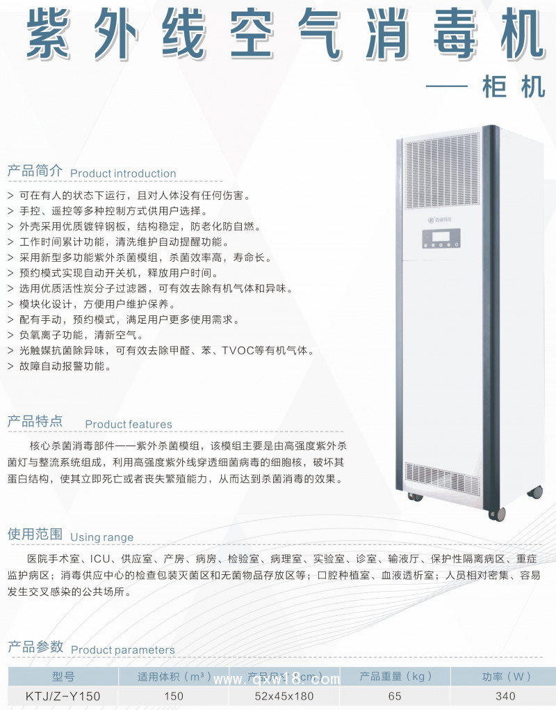 規(guī)格參數(shù) | 型號:KTJ/Z-Y150 外形:移動式 外型尺寸:52×45×180(cm) 重量:65kg |