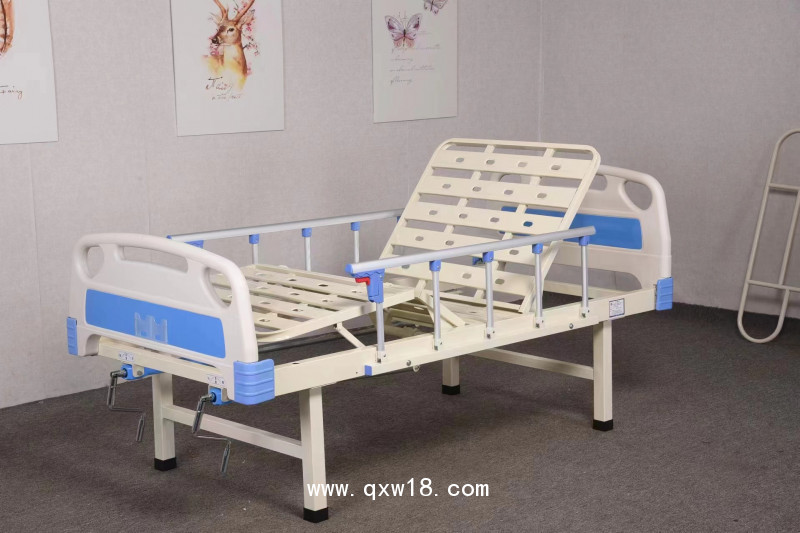 配置:ABS雙搖床+ABS床頭床尾+五檔不銹鋼立柱護欄2個+搖桿系統(tǒng)2套+輸液架1個+餐桌+靜音輪