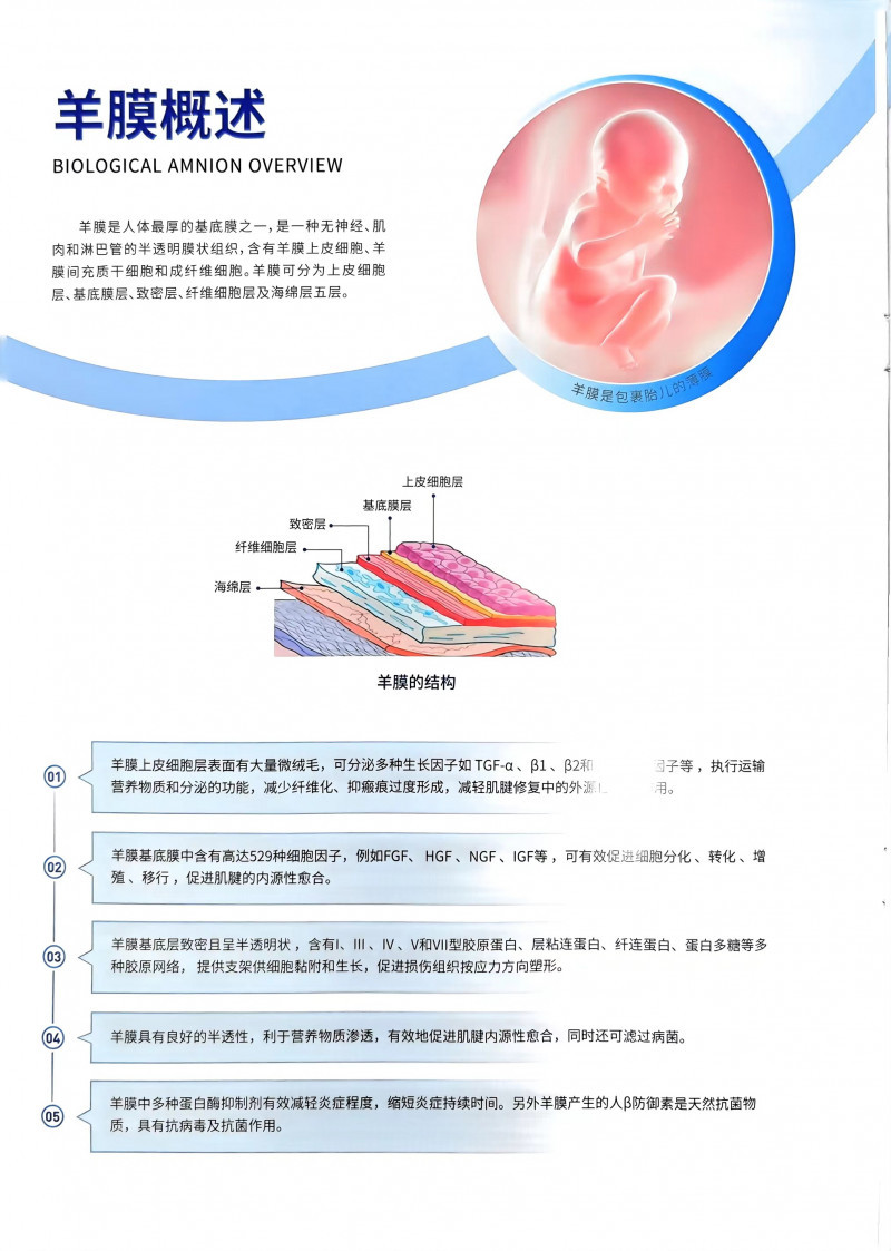 羊膜具有良好的半透性,利于營養(yǎng)物質滲透,有效地促進肌腱內源性愈合,同時還可濾過病菌。