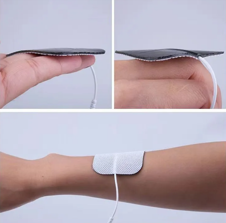 使用時,貼附在理療部位。配合中低頻、干擾電等電療設(shè)備,將電療設(shè)備輸出的電刺激信號傳導(dǎo)到人體皮膚表面。