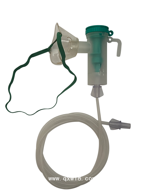 在呼吸裝置系統(tǒng)中,一端接入氧氣,用氧氣的壓力將放置于霧化器中的藥劑霧化,產(chǎn)生的霧化氣體通過霧化器的另一端吸入病人口中。