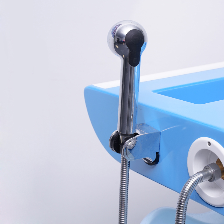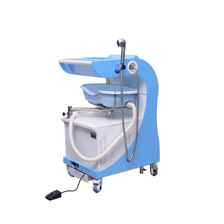 多功能自控洗頭擦浴車由推車、凈水箱、污水箱、專用洗頭盆、噴淋頭、蓄電池、微型水泵、腳踏開關等組成,配備電吹風、專用頭墊、進水管、隔水墊等,具有以下功能特點: