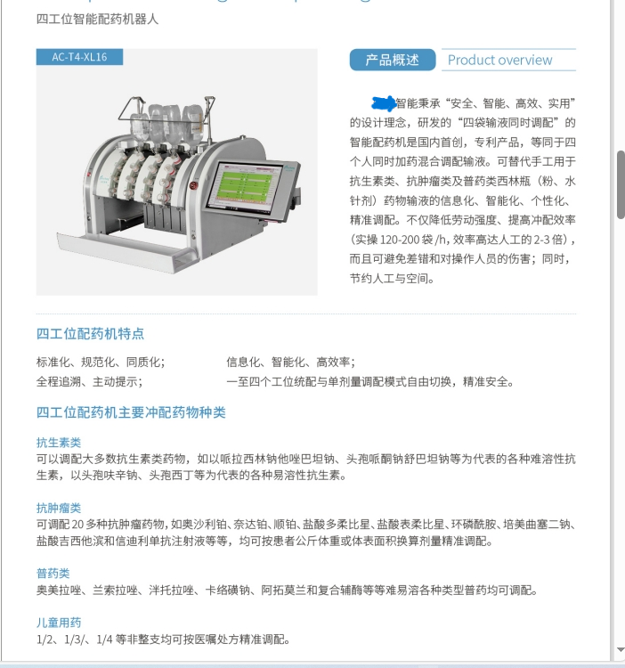 臺潤科技秉承“高效、安全、實(shí)用”的設(shè)計(jì)理念,研發(fā)的“多袋輸液同時配置”的智能配藥機(jī)是臺潤科技國內(nèi)**,是國內(nèi)**節(jié)省人工的配藥機(jī)。多工位機(jī)***解決了全自動機(jī)價格昂貴問題,同時解決了單工位臺式機(jī)防護(hù)性差和漏液、爆管、殘留多等諸多質(zhì)量問題