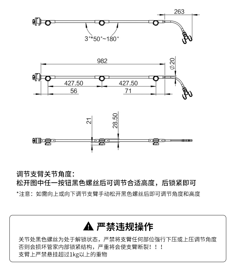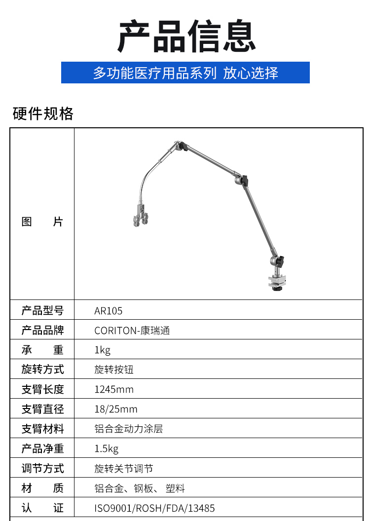 醫(yī)用呼吸機(jī)支臂支架產(chǎn)品說明:
