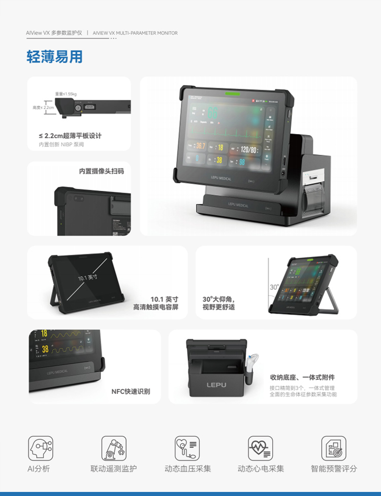 樂普AIView-VX平板多參數(shù)監(jiān)護(hù)儀產(chǎn)品說明: