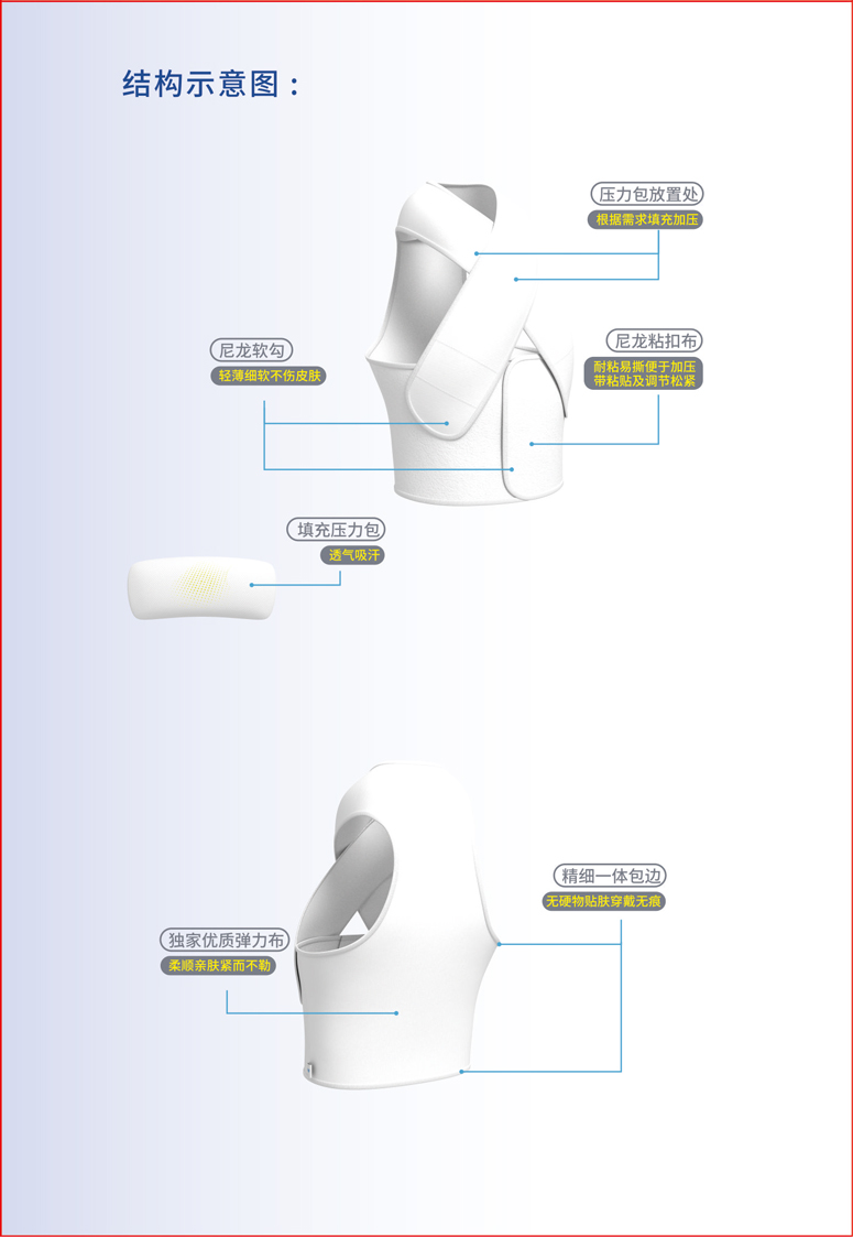 [注意事項]1、固定前檢查壓力繃帶各部位是否牢固,固定時必須牢固。