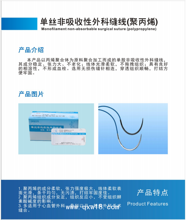 聚丙烯PP縫合線 單絲非吸收性外科縫合線 血管縫合線產(chǎn)品說明: