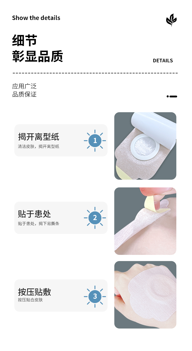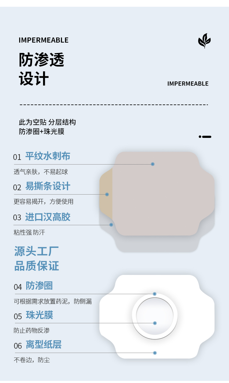 醫(yī)用透氣膠帶膏藥布穴位貼空白貼加防滲圈珠光膜產品說明: