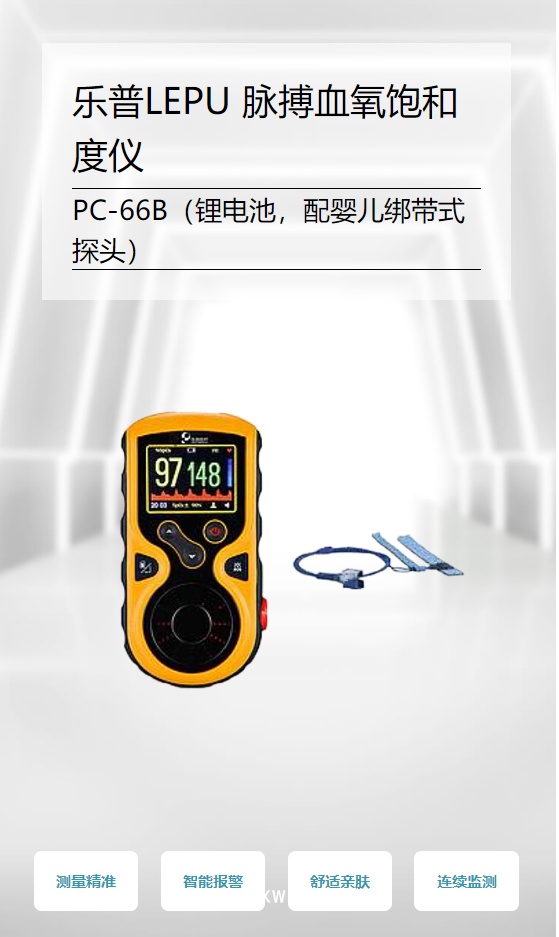 樂普LEPU 脈搏血氧飽和度儀 PC-66B(鋰電池,配嬰兒綁帶式探頭)產(chǎn)品說明: