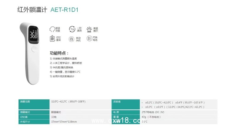 愛立康 額溫槍紅外額溫計AET-R1D1產(chǎn)品說明: