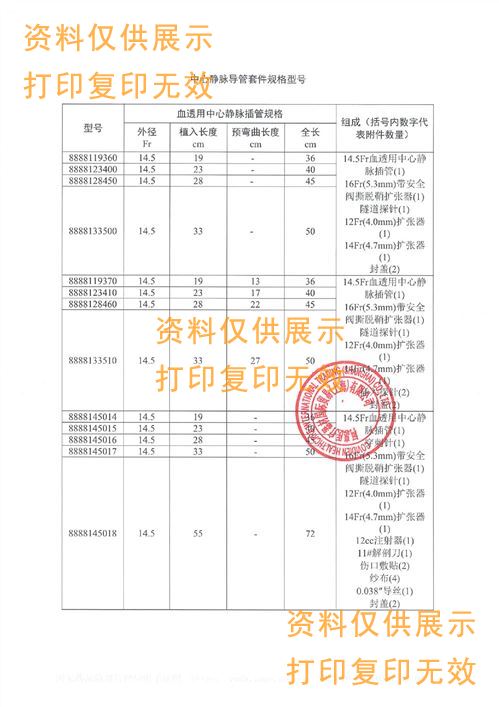 名稱:中心靜脈導(dǎo)管套件