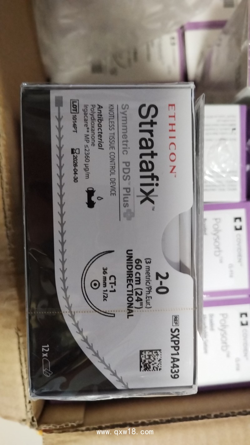 縫線是由Polydioxanone(聚對二氧環(huán)己酮)材料制成的帶單向錨鉤無菌可吸收性單股縫線。一端連有一個手術針,一端連有一個固定翼片。由于采用了錨鉤和固定翼片的設計,在組織縫合時無需打結??p線上含抗菌物質(zhì)三氯生,只用于抑制細菌在縫線上的定植。該產(chǎn)品為環(huán)氧乙烷滅菌,無涂層,手術針材質(zhì)為美國標準牌號420(對應中國牌號30Cr13)以及愛惜康不銹鋼合金ETHALLOY。固定翼片與縫合線材質(zhì)一致,均為聚對二氧環(huán)己酮。