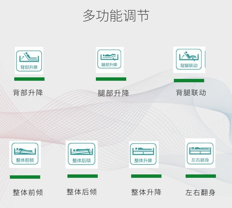 電動(dòng)五功能護(hù)理病床產(chǎn)品說明:
