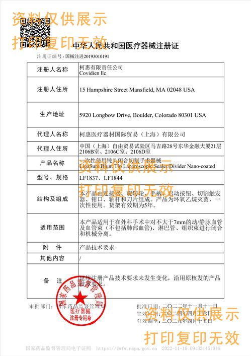 ? ? ? ?本產(chǎn)品適用于在外科手術(shù)中對不大于7mm的動/靜脈血管及血管束(不包括肺部血管)、淋巴管、組織束進行閉合和機械分離。
