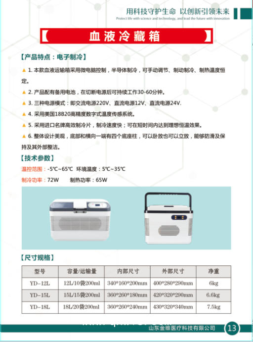 金維血液冷藏箱產(chǎn)品說明: