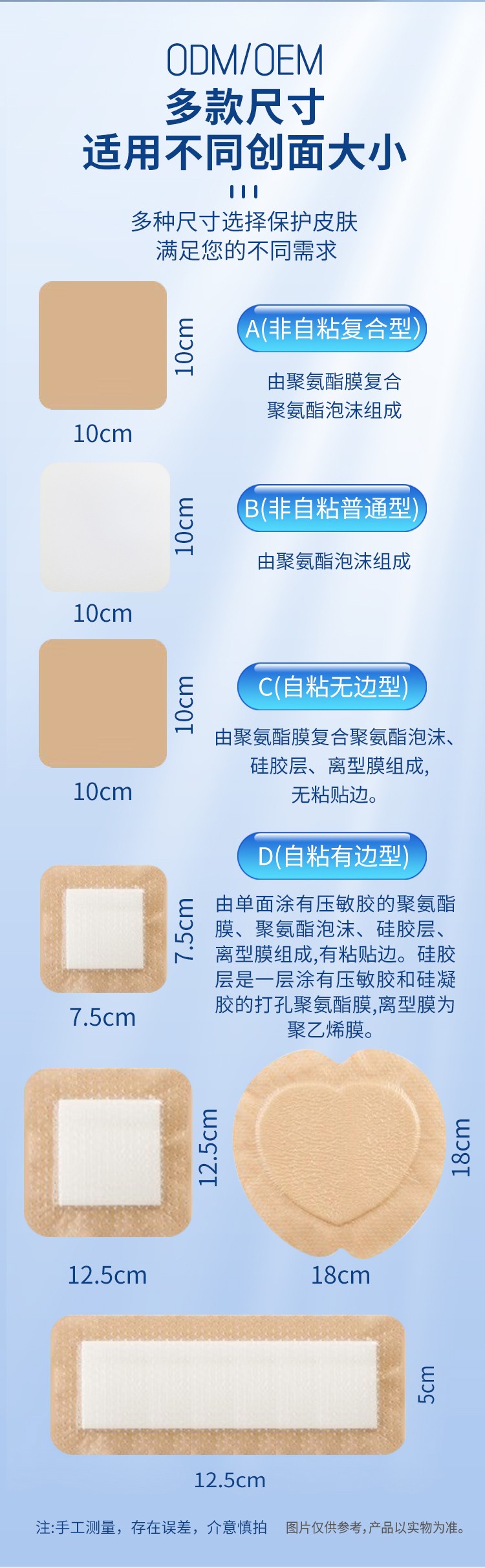 聚氨酯泡沫敷料 醫(yī)用濕性愈合敷料褥瘡燙傷敷料貼廠家產(chǎn)品說明: