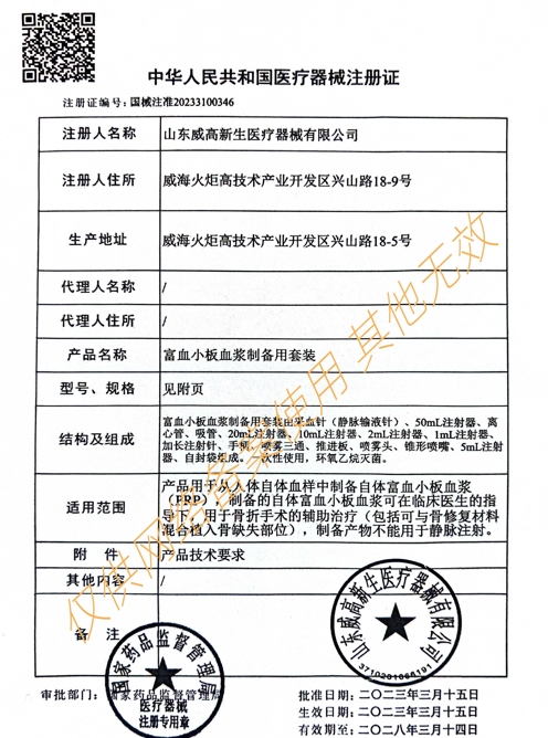 富血小板血漿(PRP)制備用套裝?威高PRP 富血小板血漿制備用套裝 制備器 分離器 富血小板血漿提取系統(tǒng)(PRP)離心機(jī)
