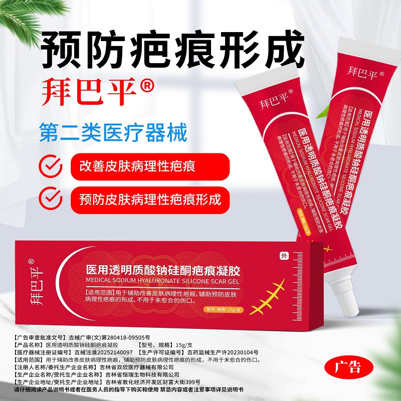 【產(chǎn)品名稱】醫(yī)用透明質(zhì)酸鈉硅酮疤痕凝膠(拜巴平)