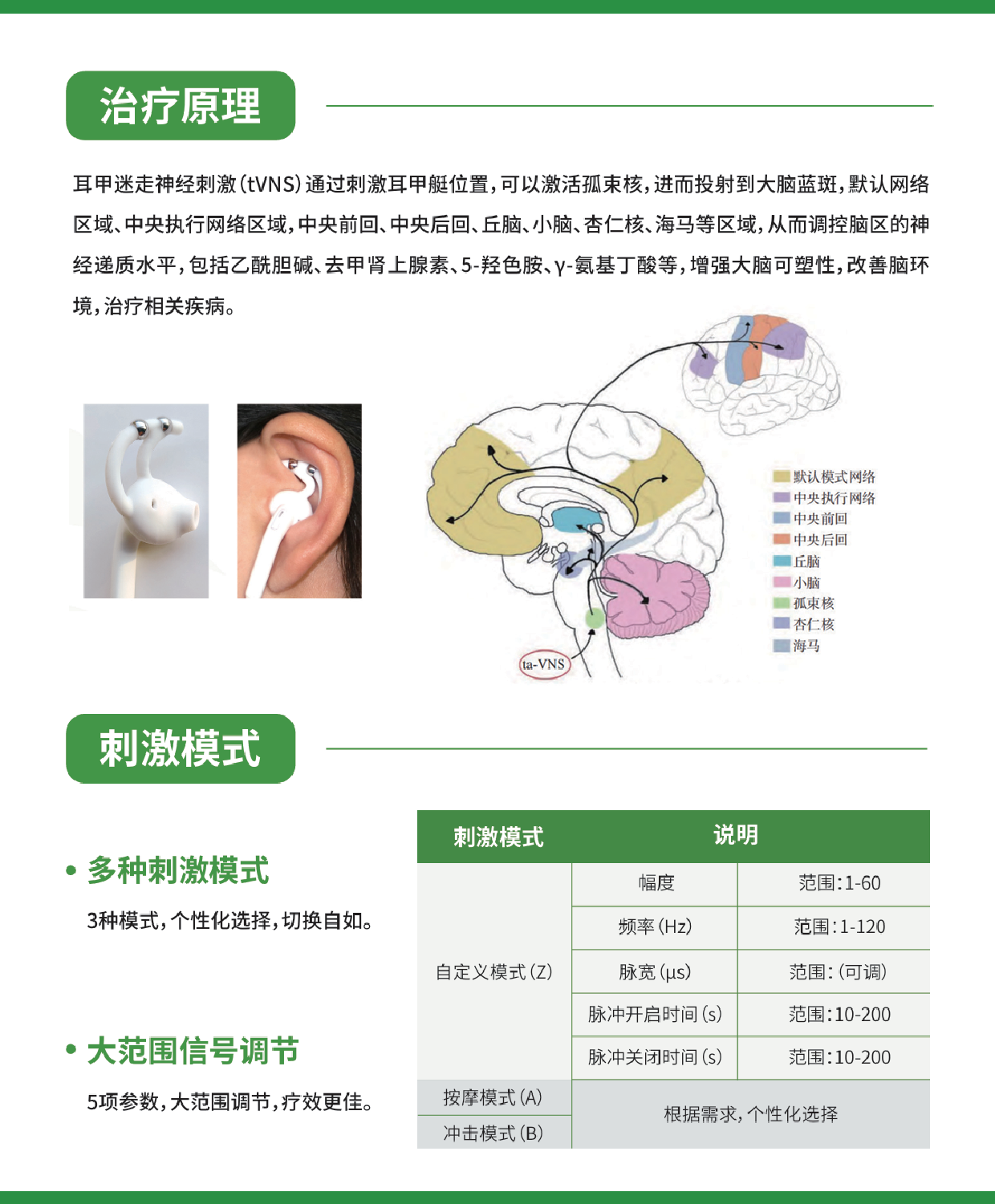 耳甲迷走神經(jīng)刺激器采用了專利耳機(jī)結(jié)構(gòu)設(shè)計(jì),無需專業(yè)醫(yī)護(hù)人員協(xié)助,患者也可以通過自行佩戴實(shí)現(xiàn)精準(zhǔn)耳甲艇刺激治療,結(jié)合便攜式獨(dú)立主機(jī)設(shè)計(jì),隨身佩戴不影響日?;顒?dòng)和走動(dòng)。設(shè)備可根據(jù)患者個(gè)體需求,調(diào)整多種刺激模式。