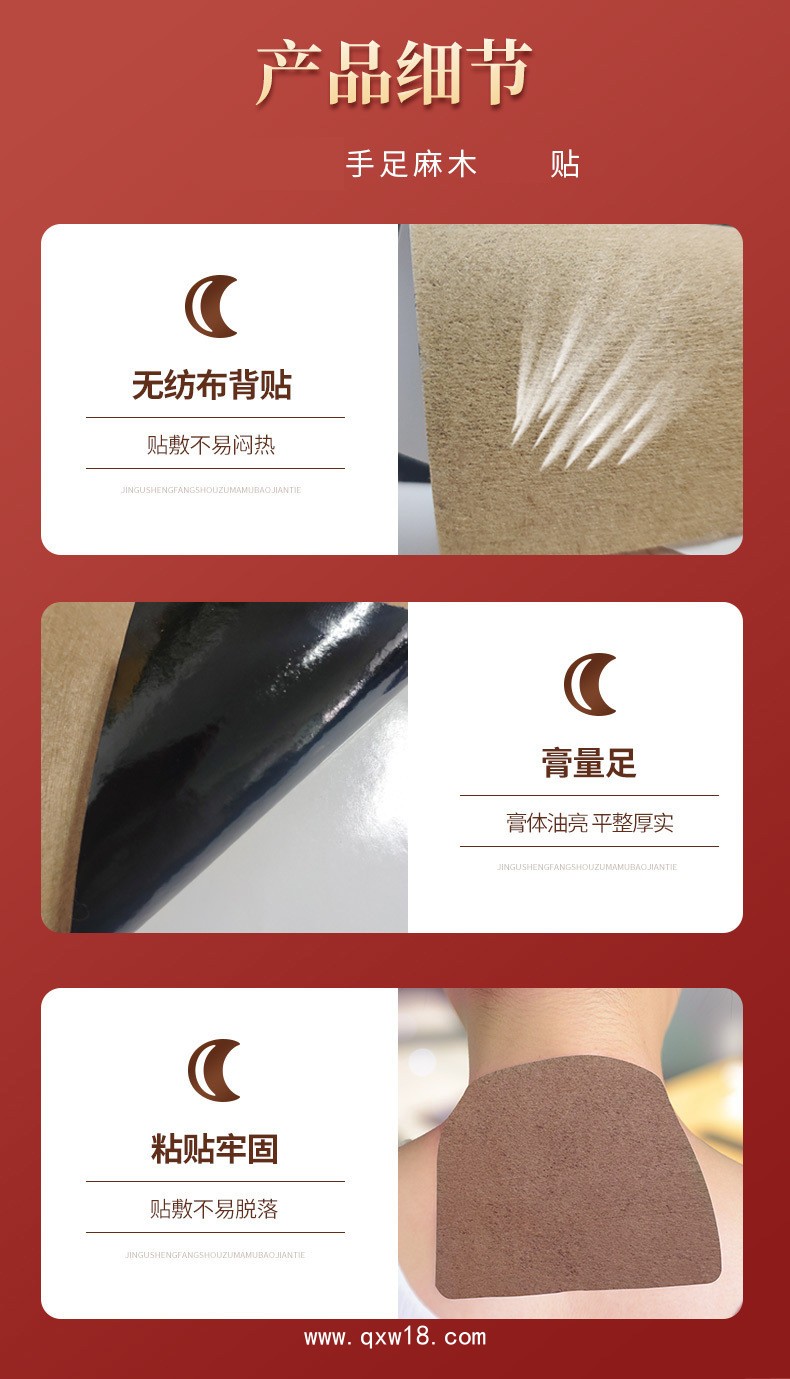 四肢麻木貼廠家 腱鞘炎手腳關(guān)節(jié)酸脹手足麻木膏貼oem貼牌代加工產(chǎn)品說明:
