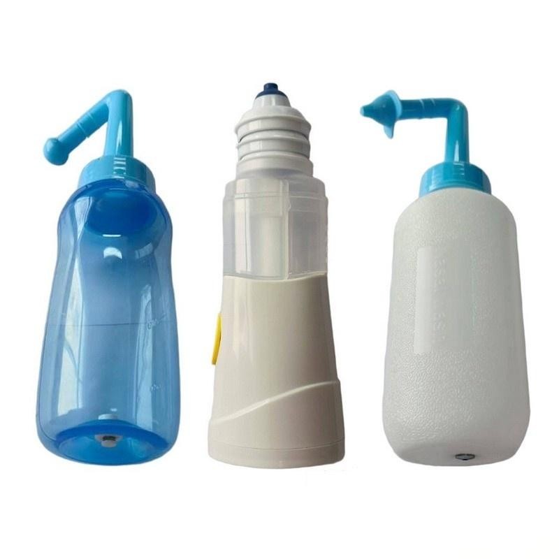 3.倒置瓶身,將噴頭對準(zhǔn)一側(cè)鼻孔,張口呼吸(鼻子憋氣),操作閥門,即可開始洗鼻。