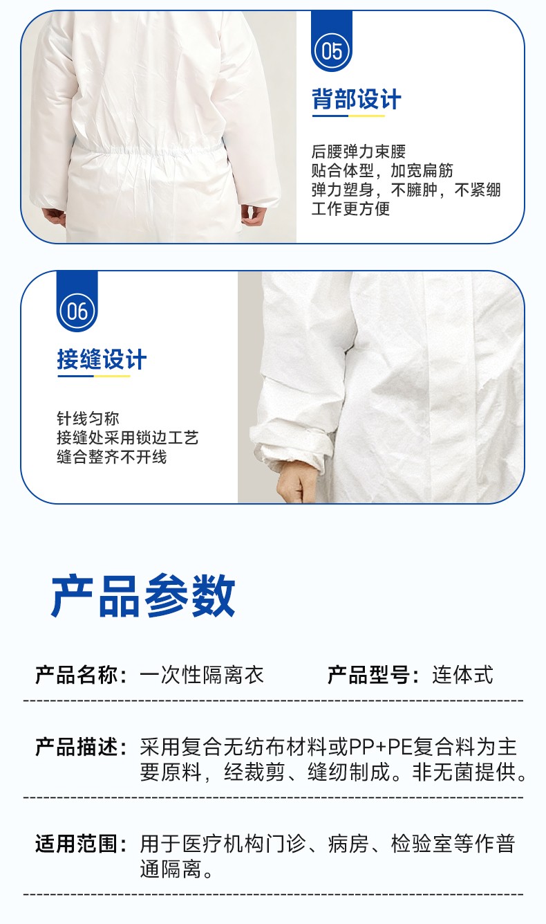 醫(yī)用一次性防護(hù)服 連身式 隔離衣產(chǎn)品說明: